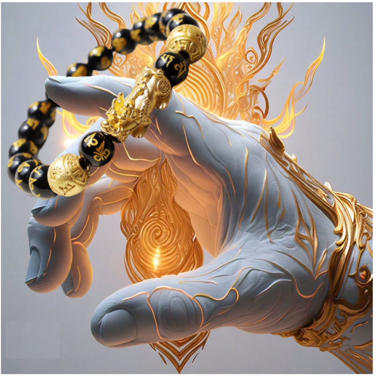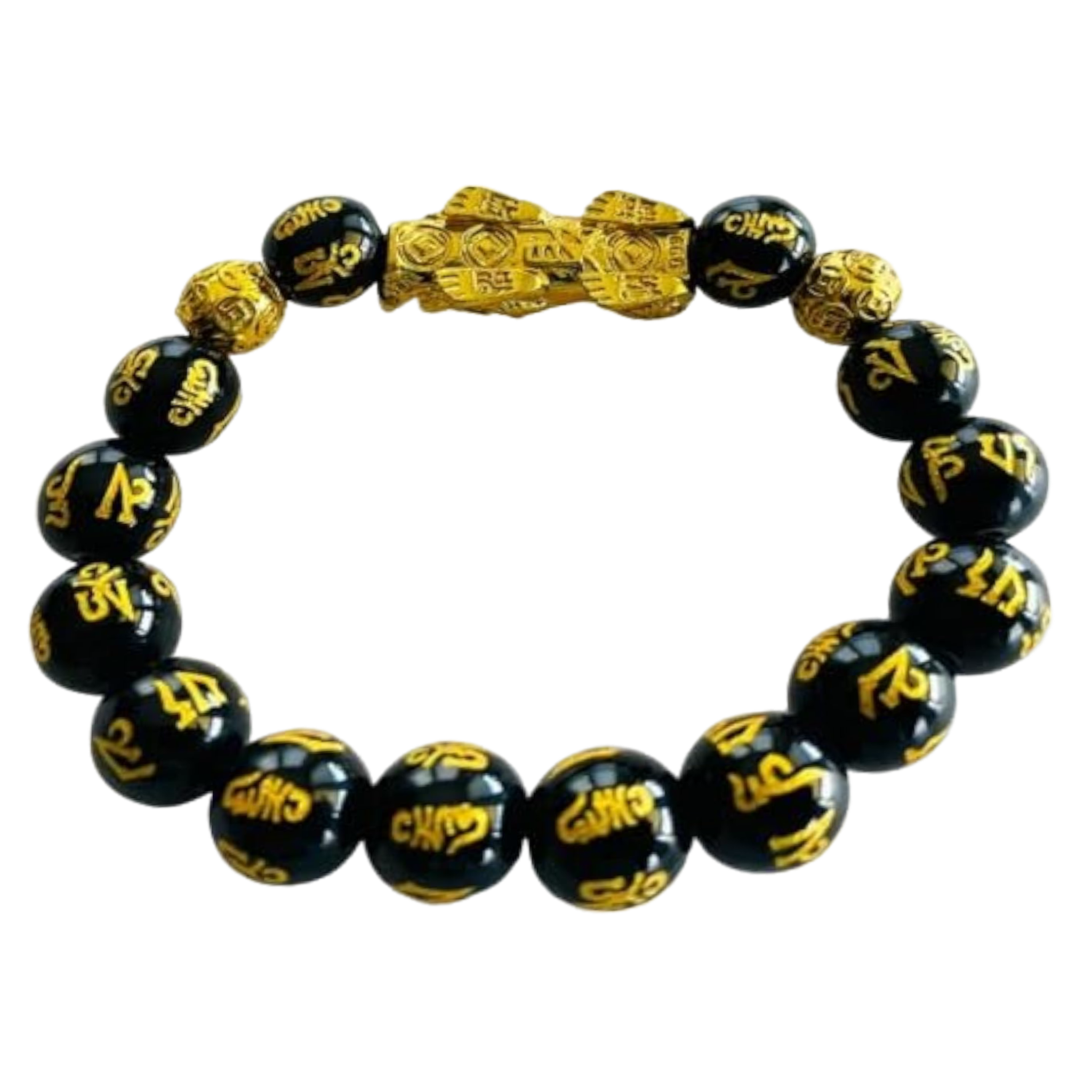 The bracelet is made up of The Pixiu which is a mythical creature that resembles a strong winged lion with the head of a dragon, the body of a horse and the legs of a Kylin which is a lucky symbol for wealth, good fortune and protection. When it comes to Feng Shui, your left hand is believed to be the receptive side, while the right hand is the projective side. To gain full use of a Pixiu's power, you need to wear it on your left hand